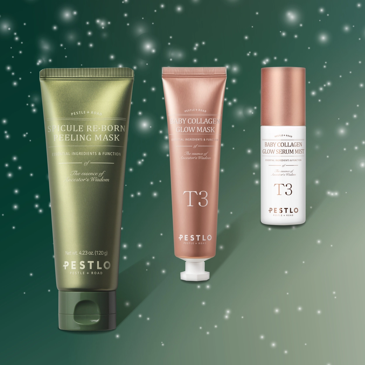PESTLO Spicule reborn peeling mask 120ml + T3 Baby Collagen Glow Mask 50ml + T3 Baby Collagen Glow Serum Mist 50ml
